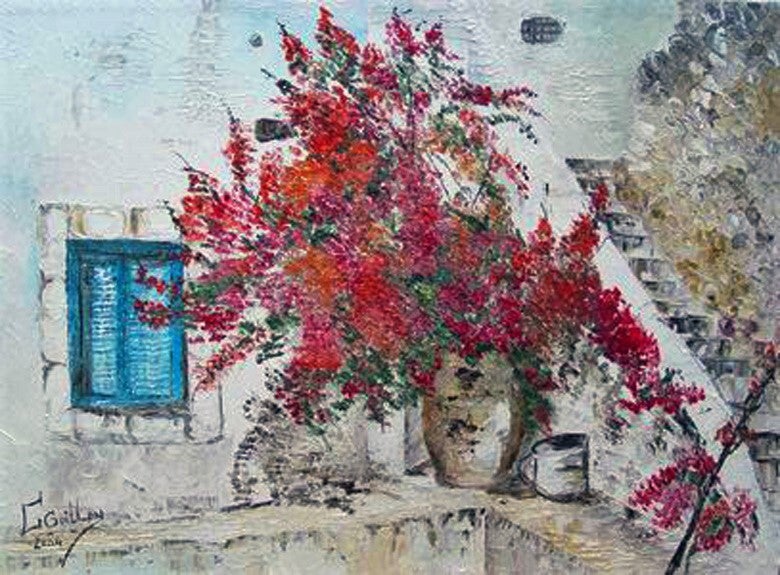 Escaliers fleuries 65x55 huile au couteaux